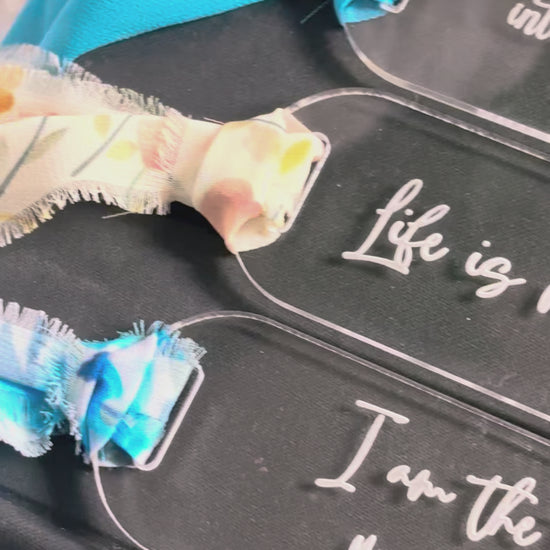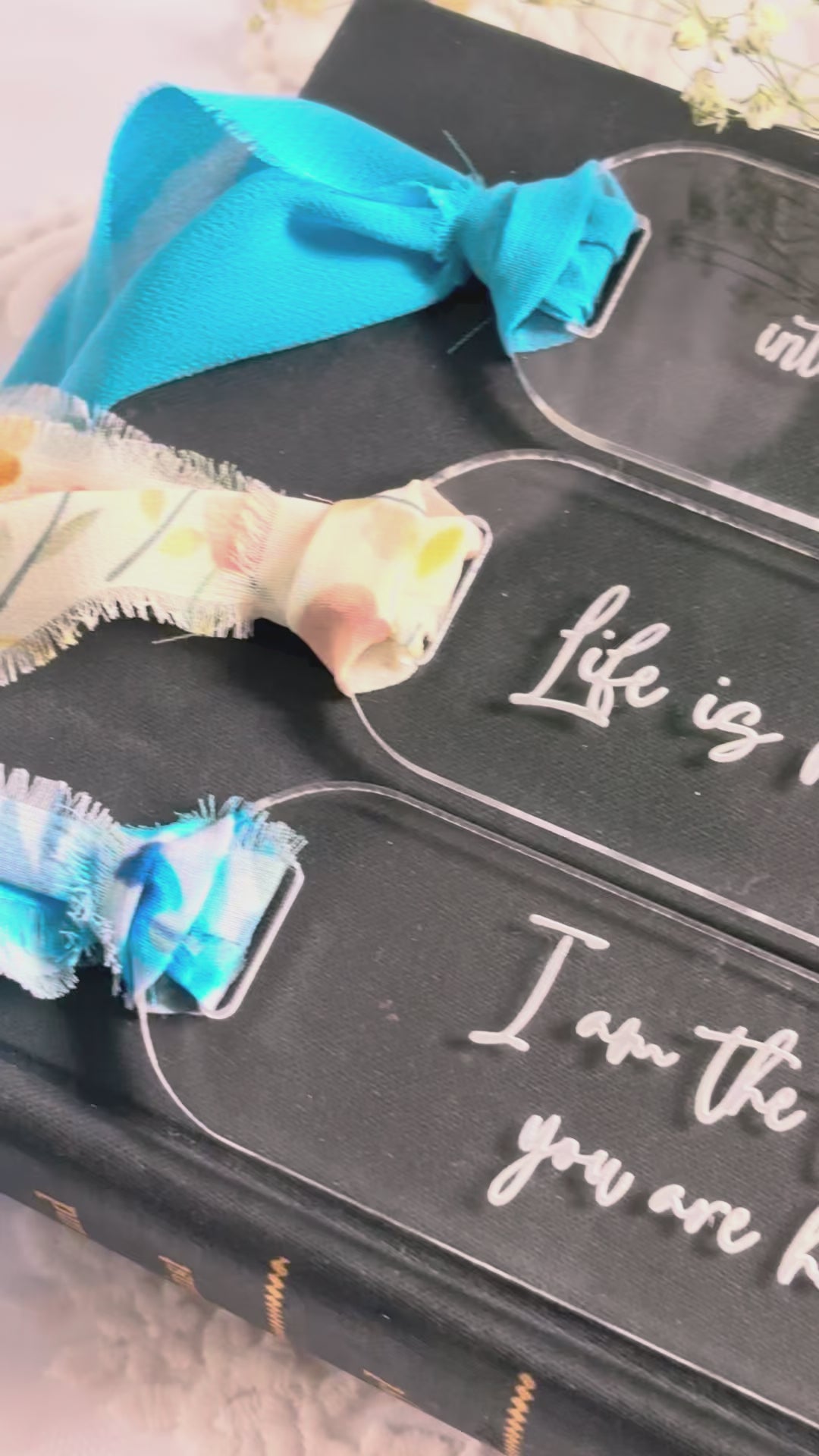 Made from durable acrylic material and engraved, it features a ribbon for easy page marking.