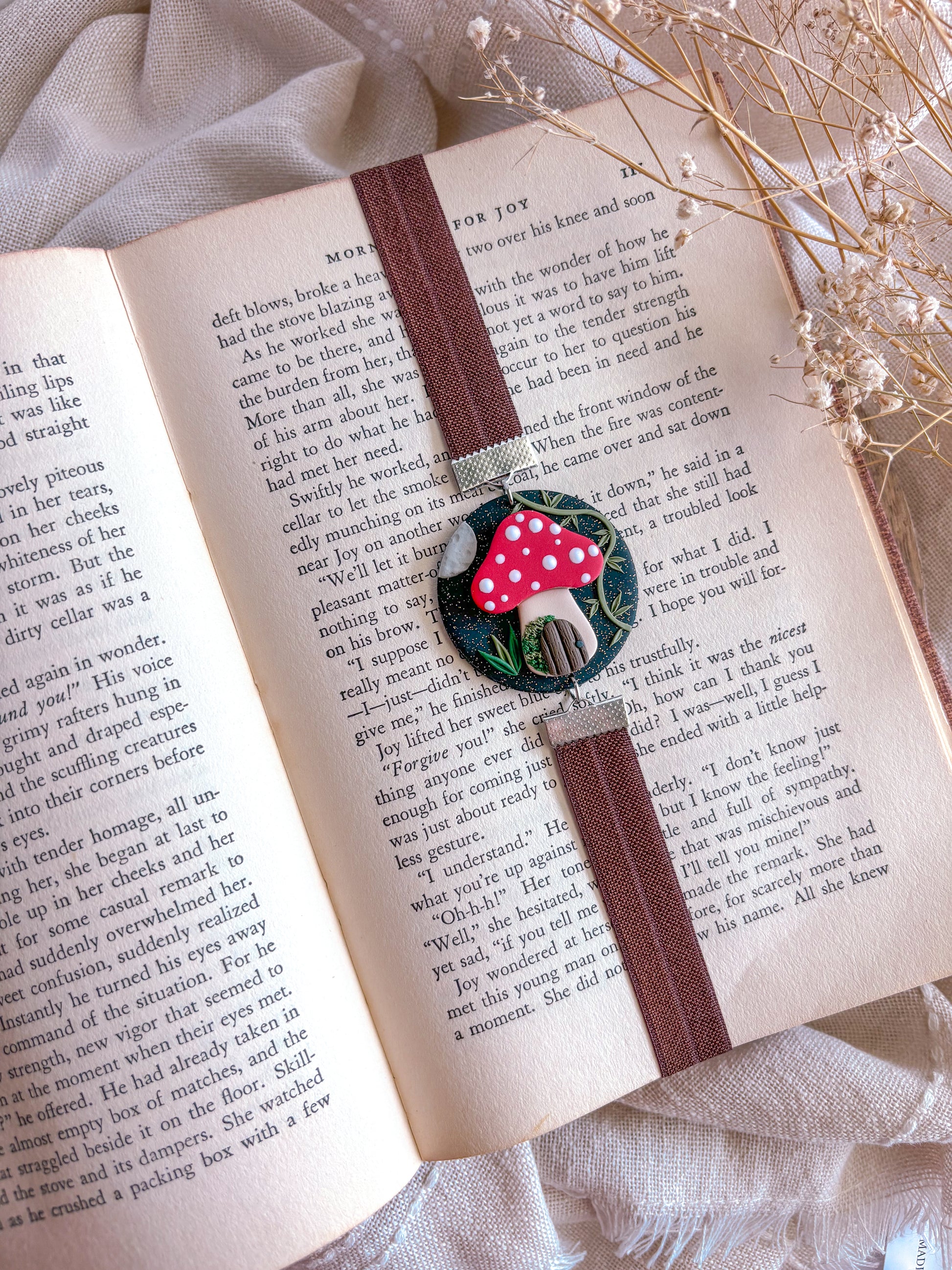 Bookmark charm is made to be placed on the outside of the book as shown in the last example picture.