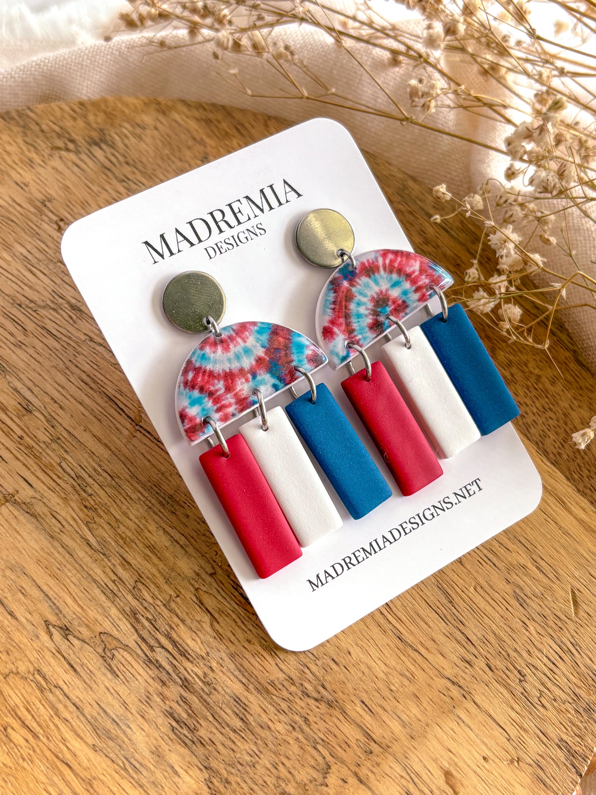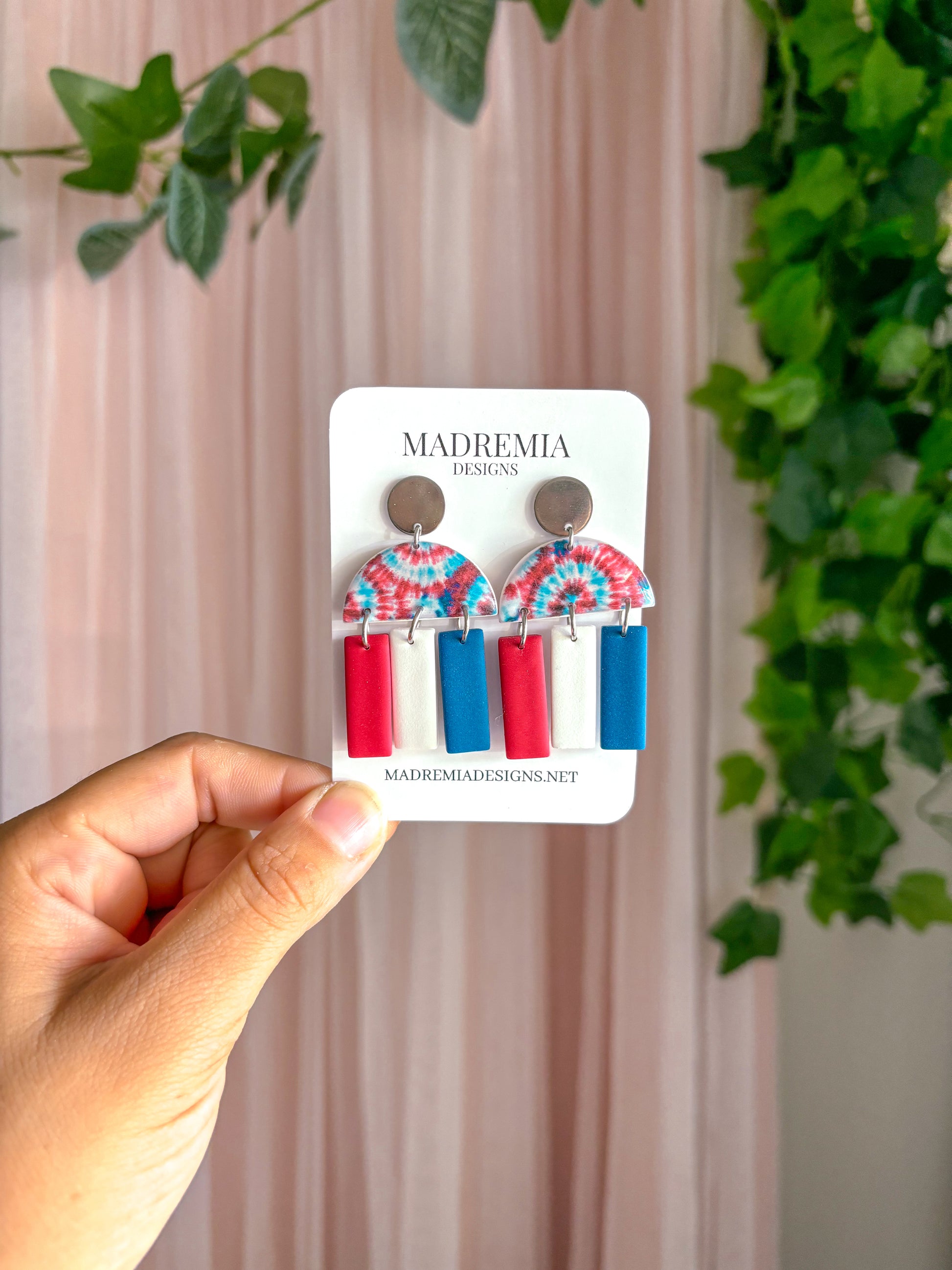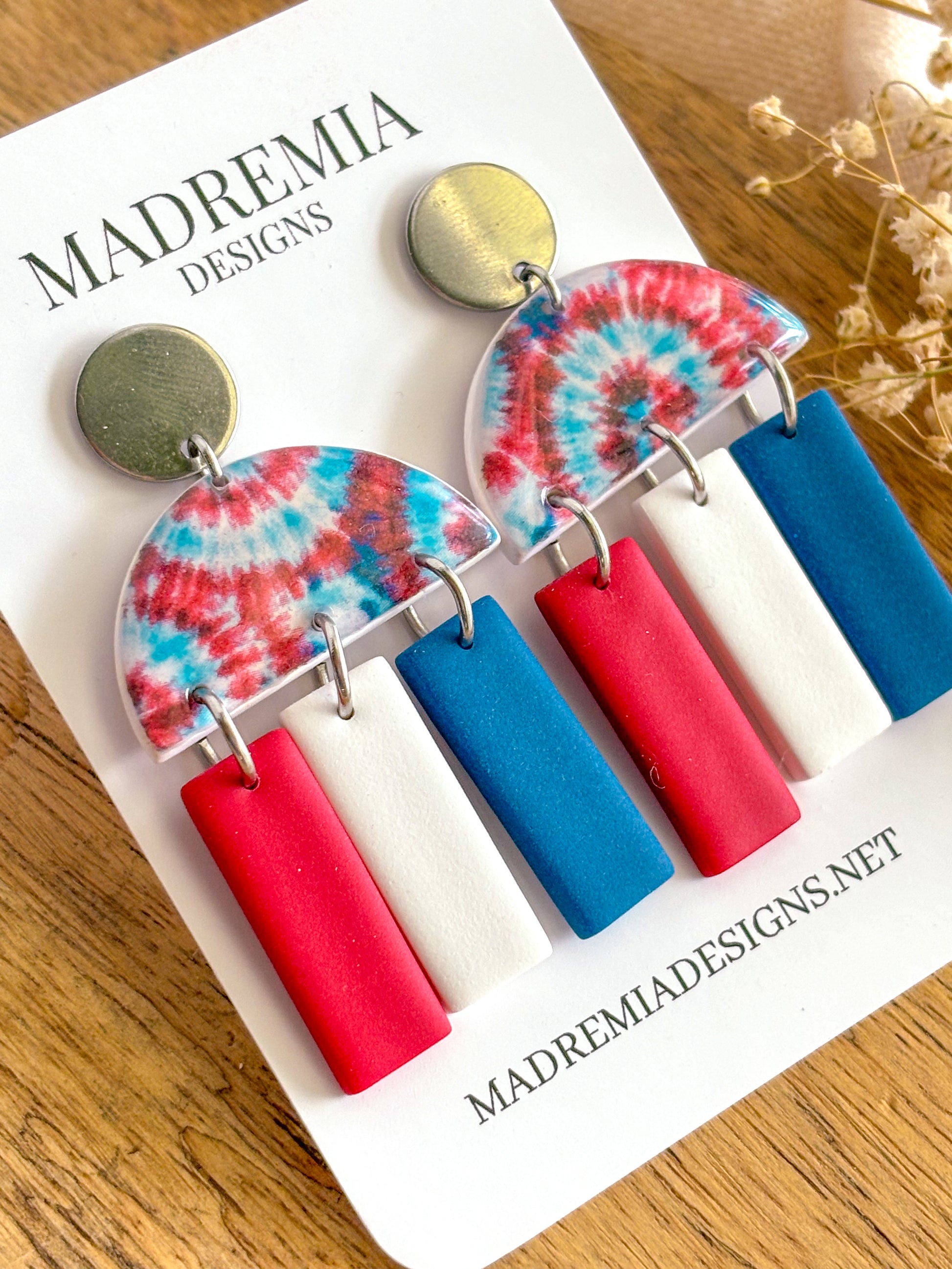 Earrings are made with stainless steel jump rings and stainless steel circle post backings.